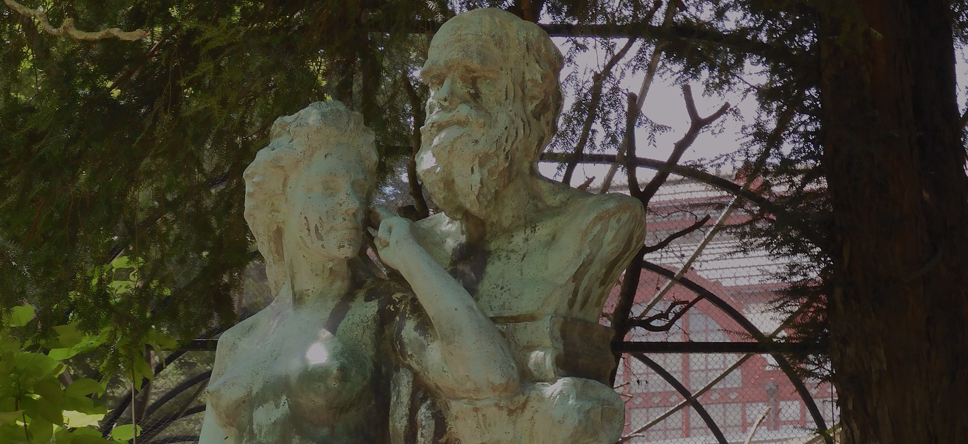 Jef Lambeaux (1898): Charles Darwin met allegorische figuur. Foto (2018). KMDA/Zoo Antwerpen.