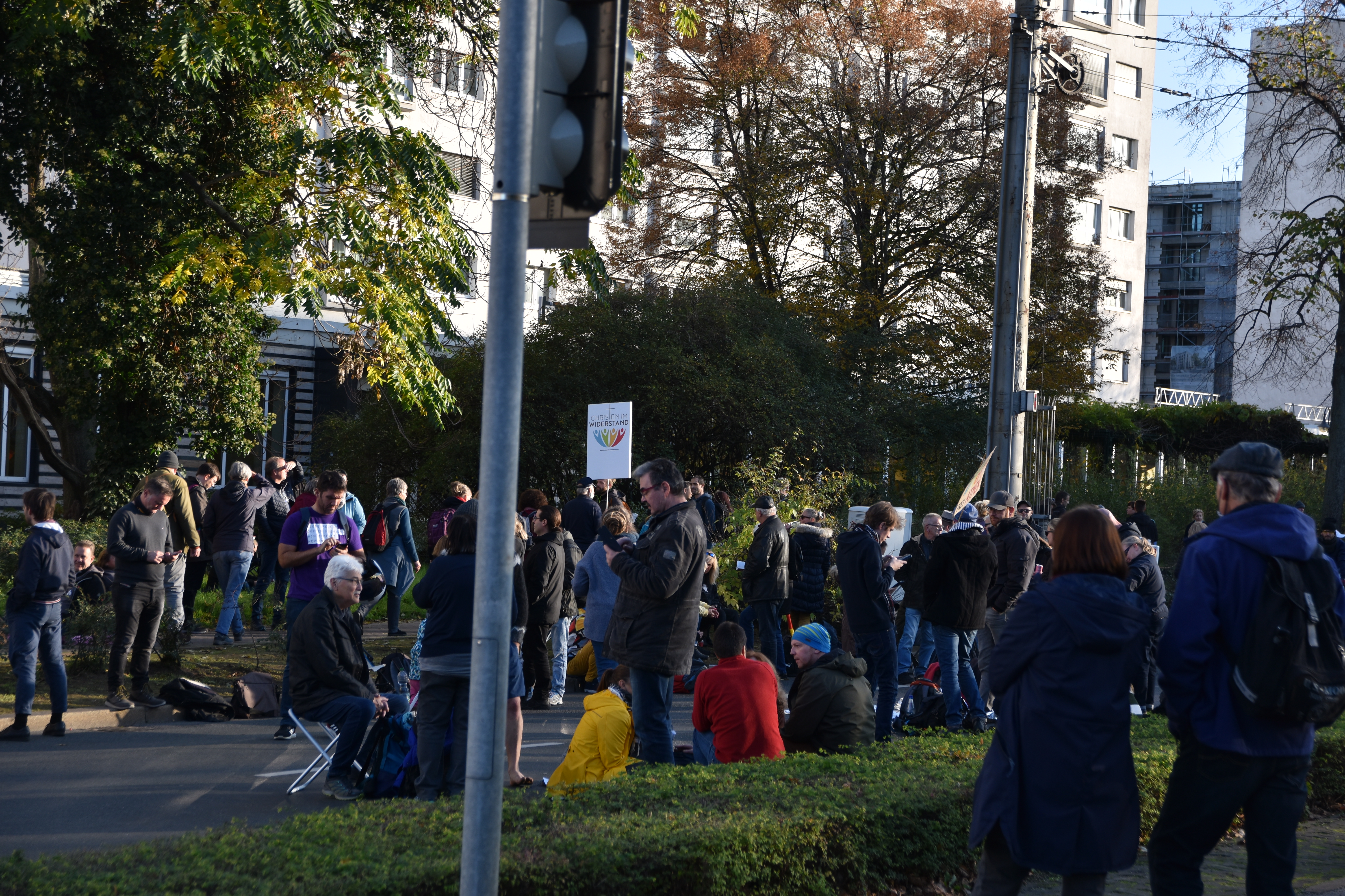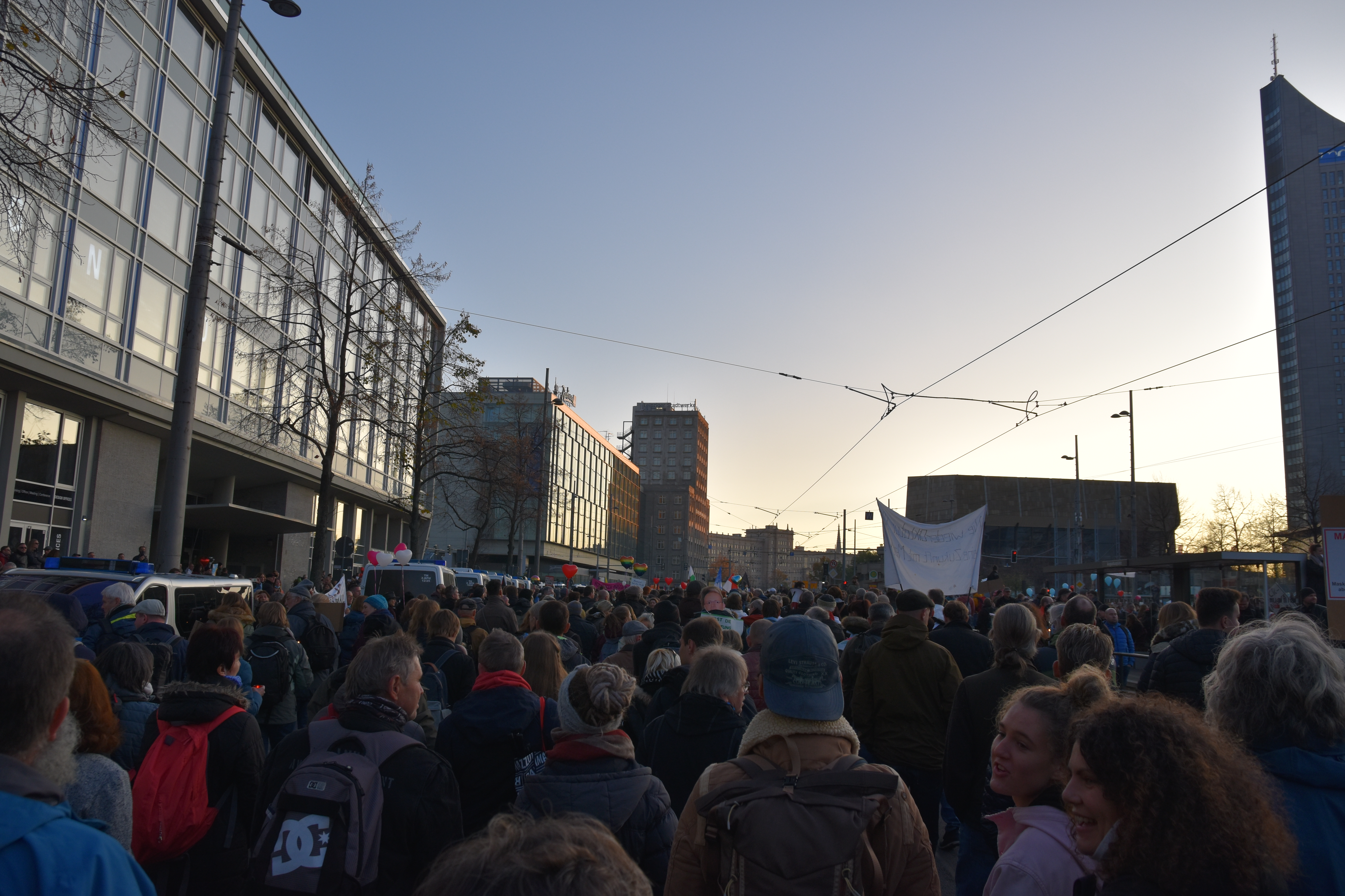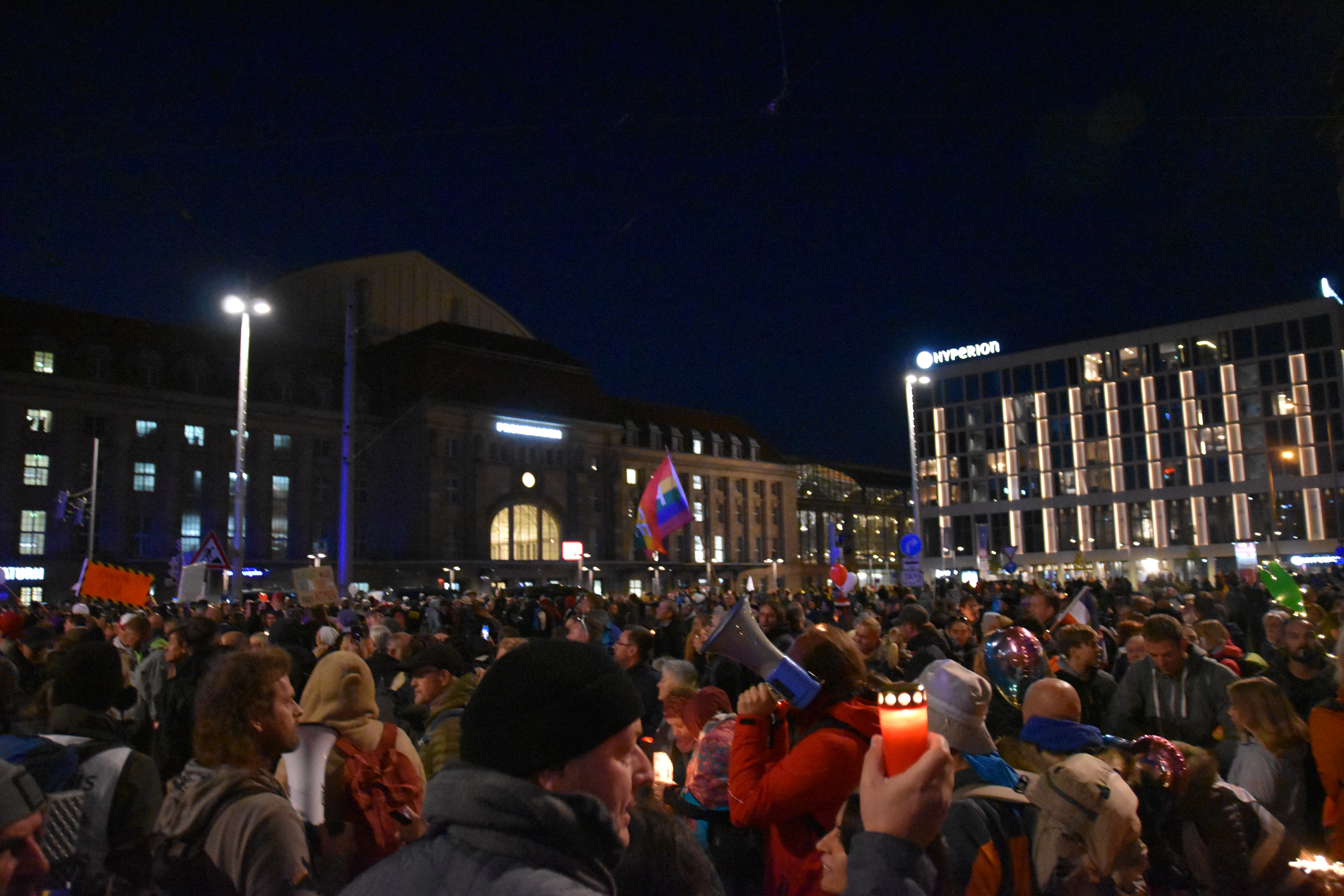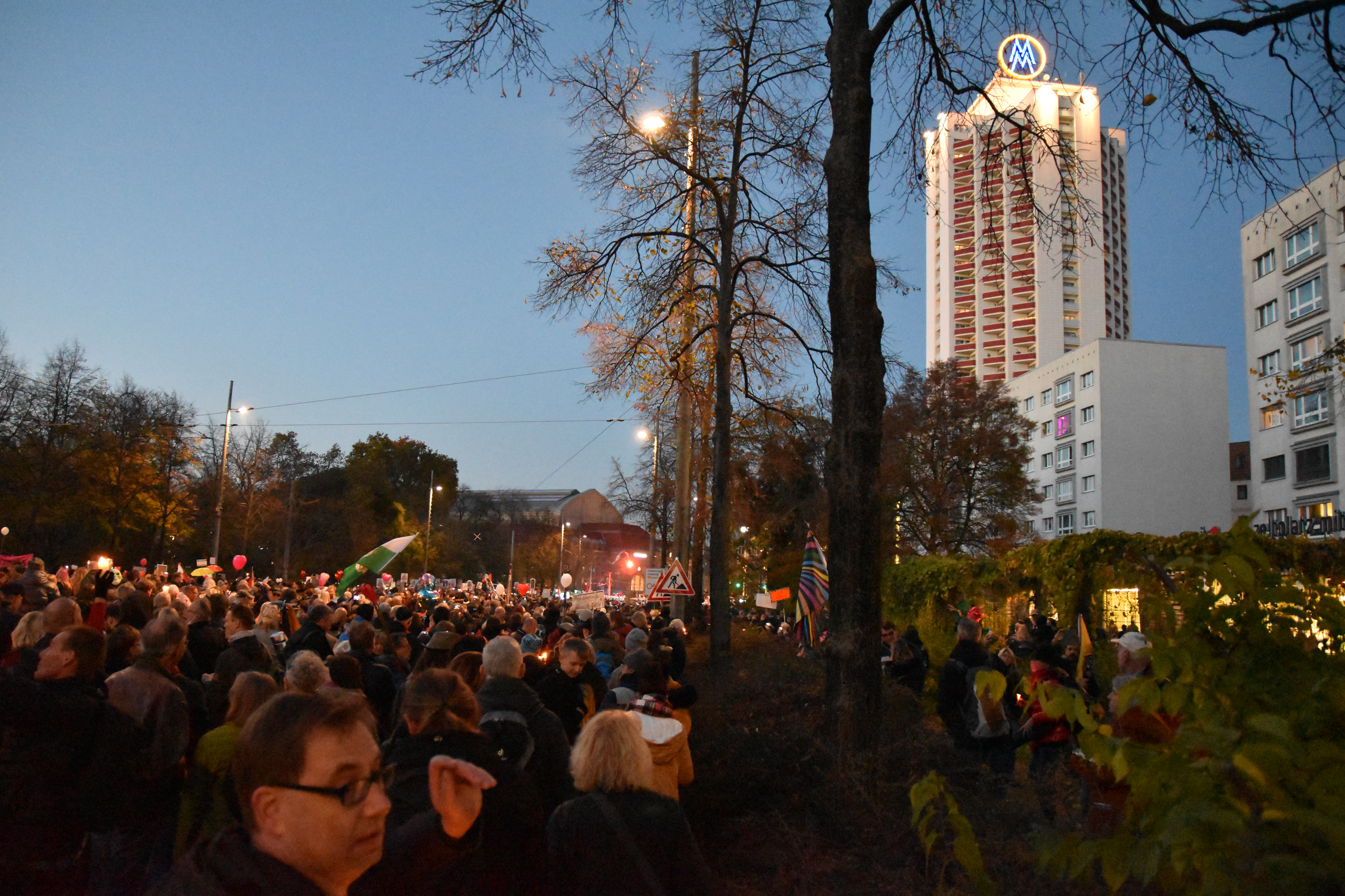 And because the police did not allow the crowd to go round the “Ring” street, as was originally scheduled for 16.00 o’clock, people started to go in circles. So there we were, 20000 or less people with candles moving in circles on a too confined space next to Augustusplatz. At that time, hygiene distance was indeed hard to maintain, but that was just after police had interfered with the organized part of the event. Was that a wise decision? Hard to tell. I guess the police has more evidence now.