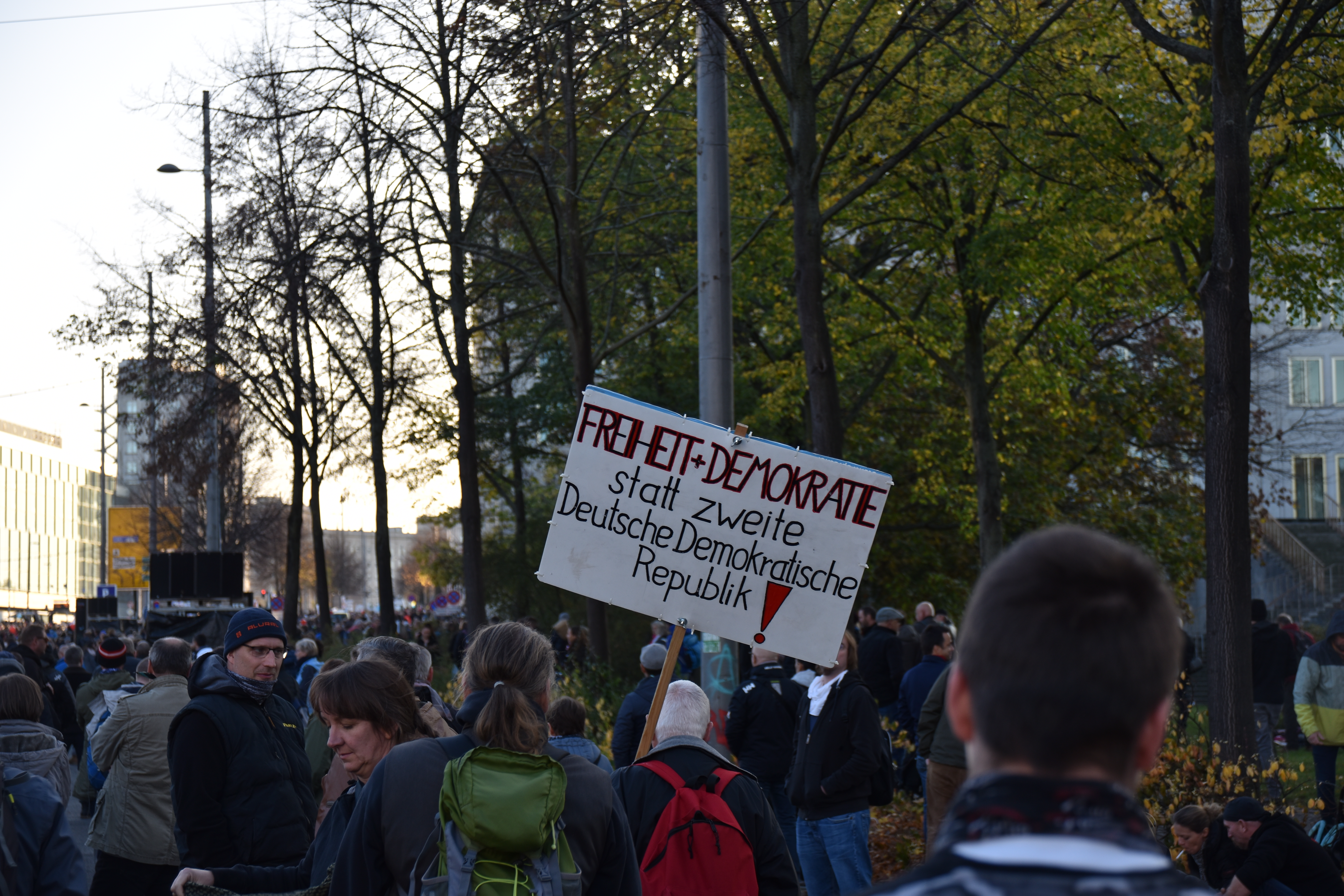 or: “Frieden! Freiheit! Keine Diktatur!” (“Peace! Freedom! No Dictatorship!”)