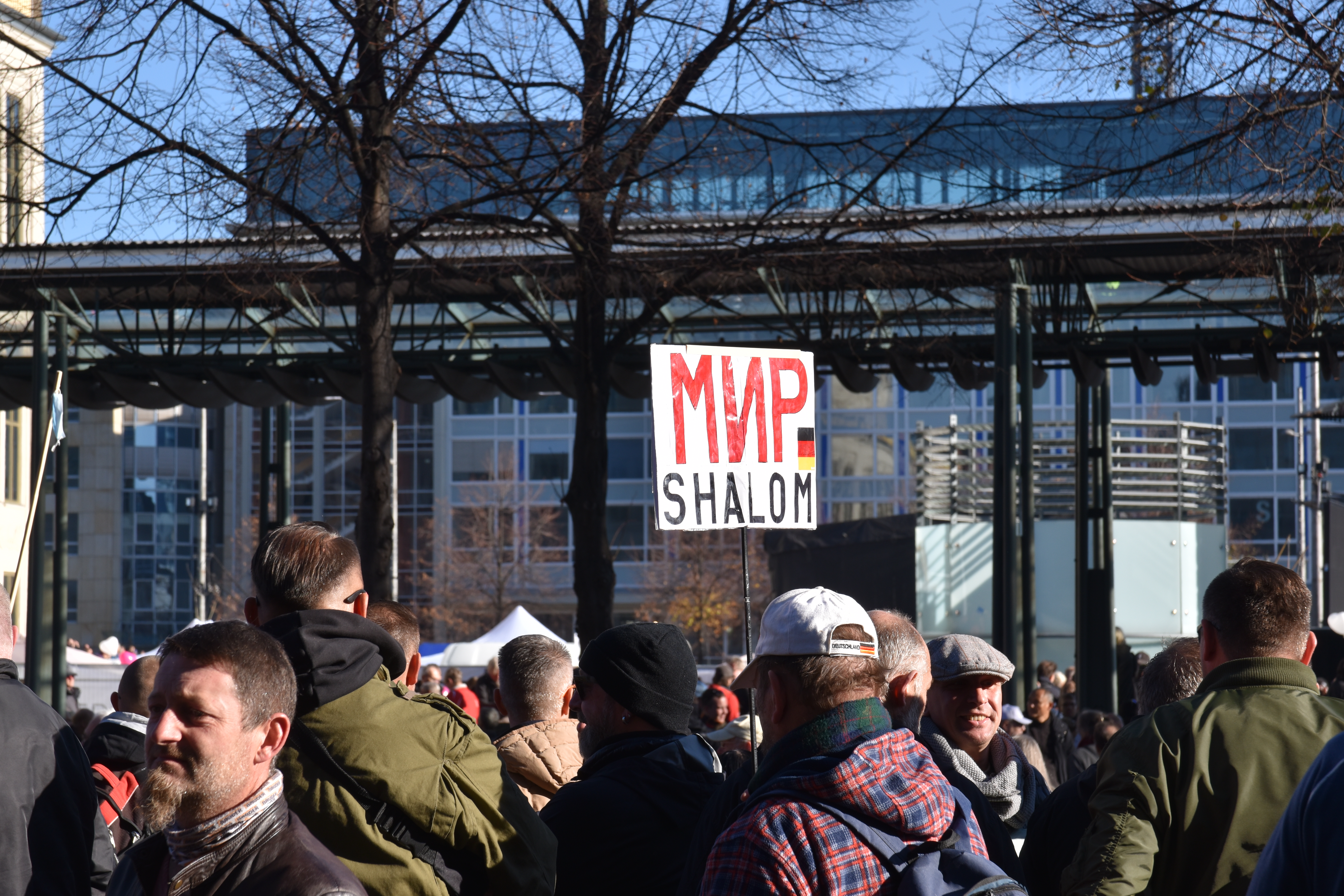“Frieden! Freiheit! Demokratie!” (“Peace! Freedom! Democracy!”)