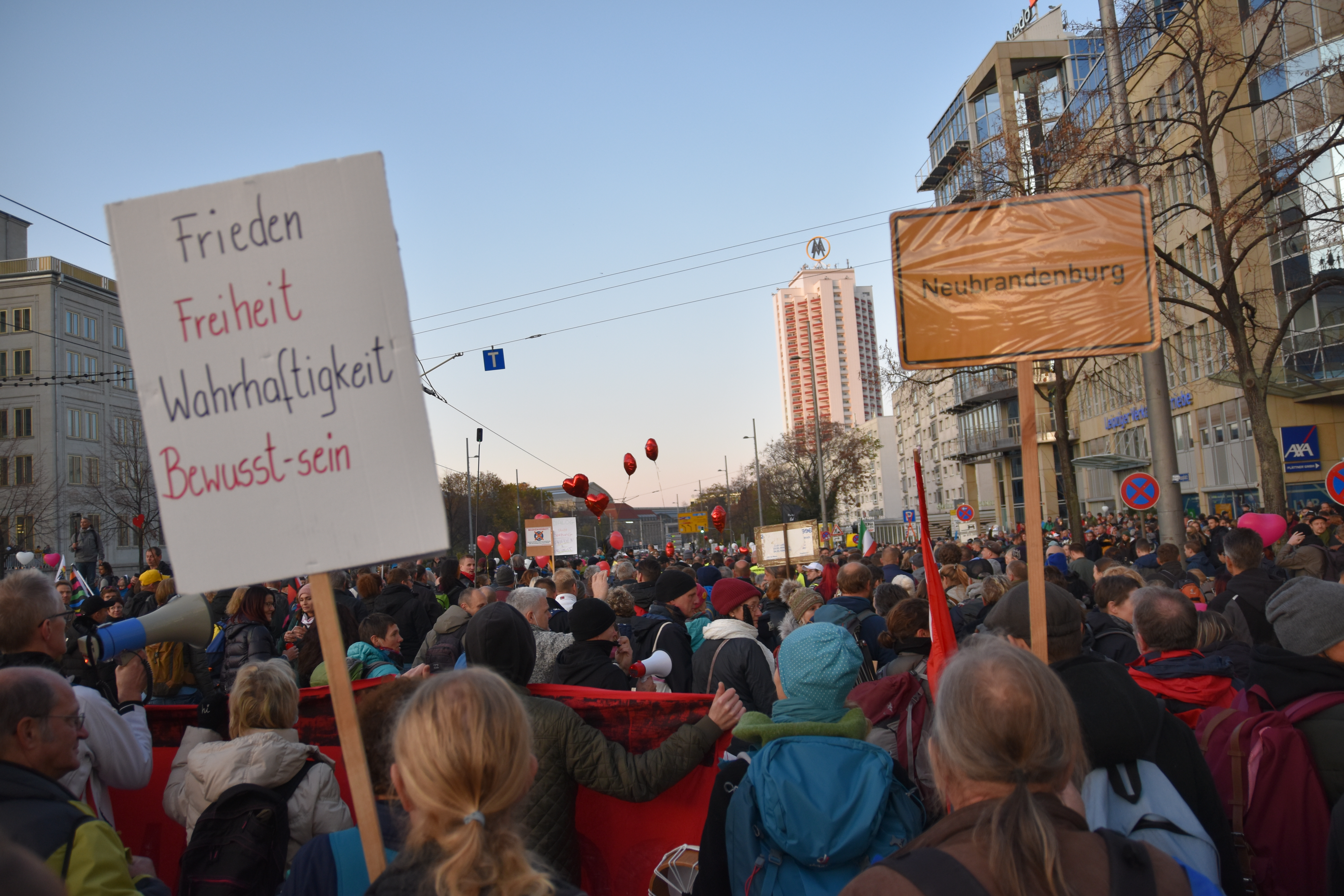 Many friends whom I told in advance that I would go to Leipzig claimed that “it’s the ‘Right’ who demonstrate there!” and argued I shouldn’t go. I understand the naïve judgement, because previous events (e.g. 29th of August in Berlin) were massively framed by media reports that indicated a right wing predominance. I had some secondary evidence that this is not the full story, and as you can read below, that was confirmed.