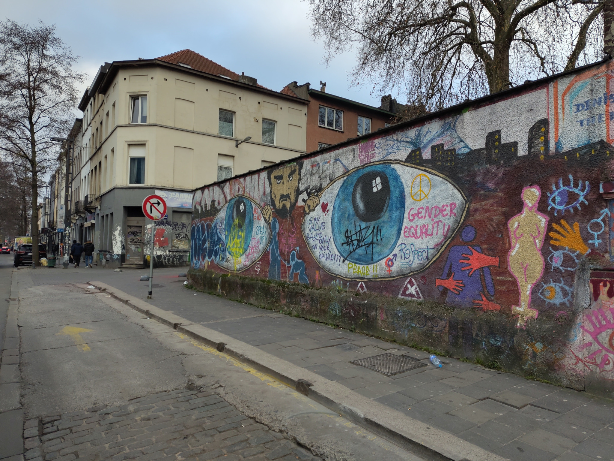 I briefly went to Aarschotstraat on the day I started writing this article, at mid-afternoon, to catch the graffiti photos displayed above. Objectively, it is a disgusting place. At the entrance close to the station, there were some stinking tin urinals where old man queued constantly to piss. The street was crowded; the obvious gender bias you would expect. Worn old men who could be the fathers of the storefront ladies. Groups of young lads who could be the ladies’ sons. No single fairytale prince on his horse.